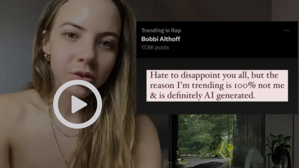 This Fake AI-generated deepfake video of interviewer Bobbi Althoff surfaced on Twitter (X), and Reddit, sparking widespread reactions and memes.